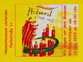 Mitglieder, Freunde und Nachbarn des Museums treffen sich am Freitag, 19.Dez.2025 vor dem Museum und singen ab 18:00Uhr bekannte Weihnachtslieder. Anschließend gibt es im Museum Heißgetränke zum